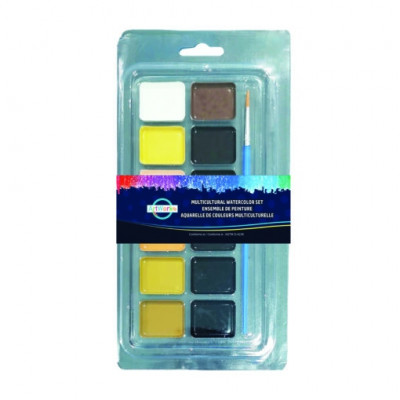 Multicultural watercolor paint set with12 colors and 1 brush ||