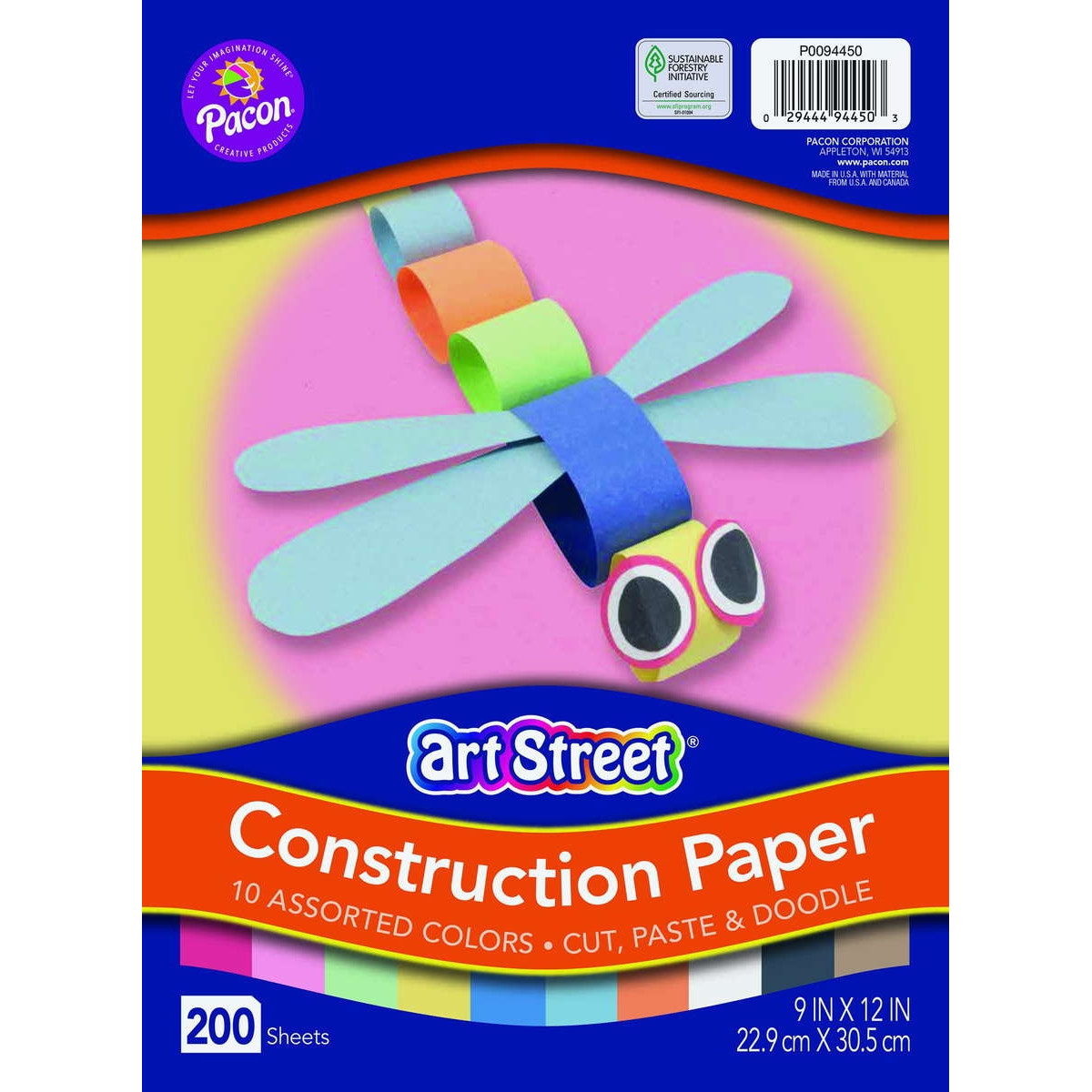 Prang® (Formerly Art Street®) 10 color assortment is perfect for beginner arts and crafts, and ideal for young children. Colors include: White, Sky Blue, Blue, Pink, Scarlet, Orange, Brown, Yellow, Green, and Black. Works great for cutting, pasting, doodling and folding. Recyclable.