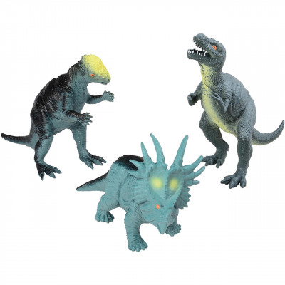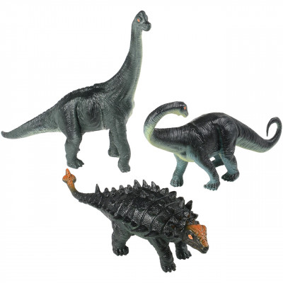 A rugged set of 12 famous dinosaurs made of poly vinyl with non-toxic painted details. Proportionately scaled to approximately 8";H x 8";L. Includes: Ankylosaurus, Tyrannosaurus Rex, Stegosaurus, Dimetrodon, Brontosaurus and others.