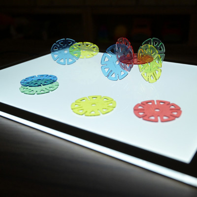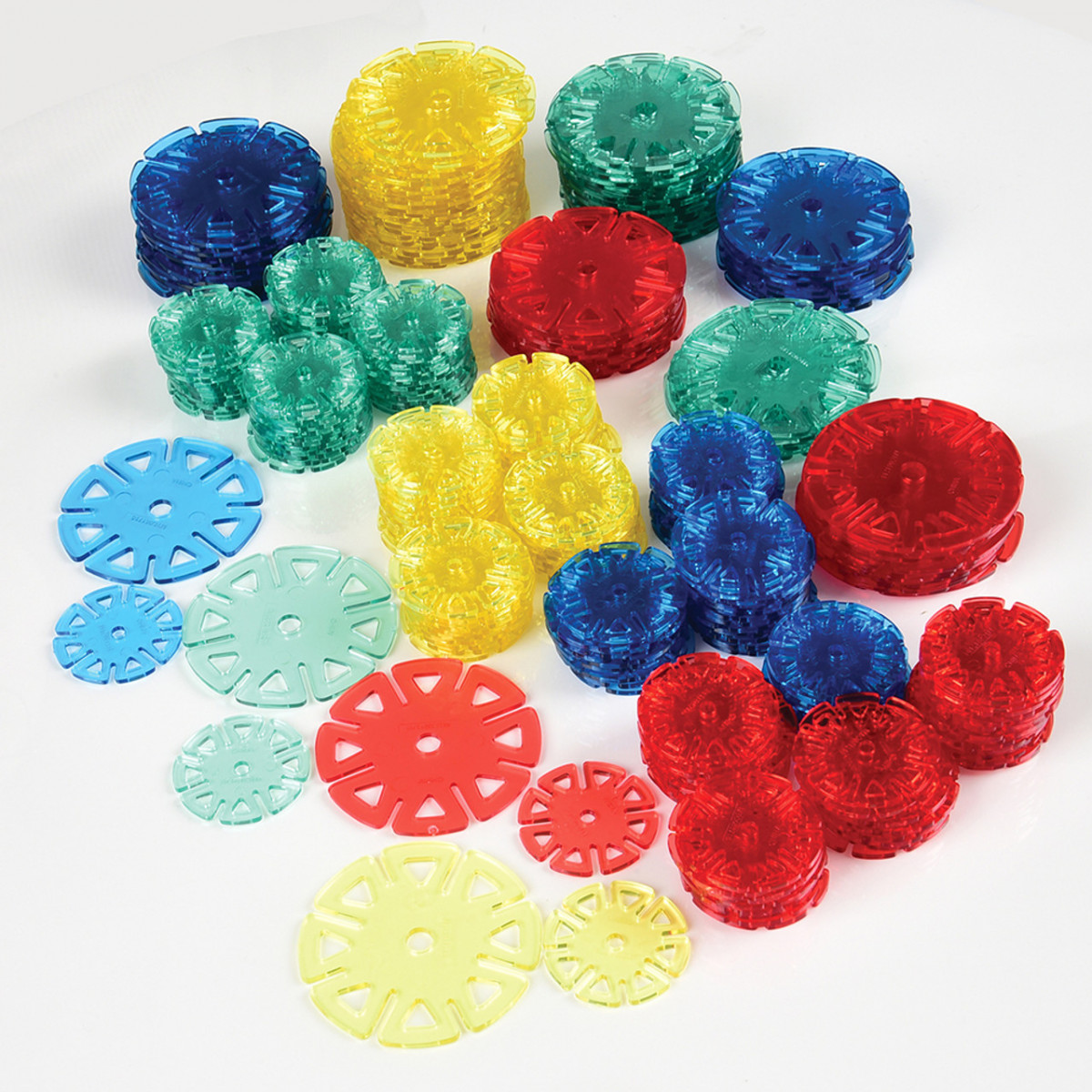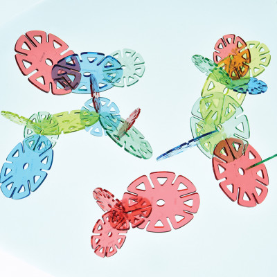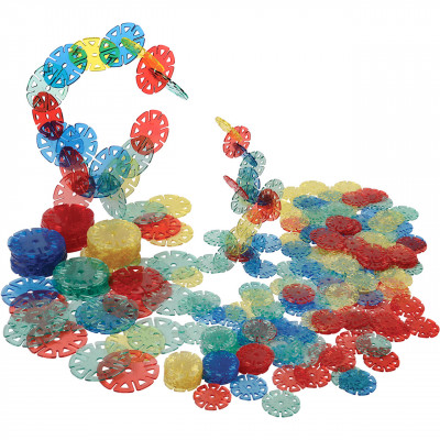With this rainbow of translucent discs, is ideal for constructing 3 dimensional structures that capture the light. Size 1½” diam. and 2½” diam. discs. Ages 3 yrs. +.