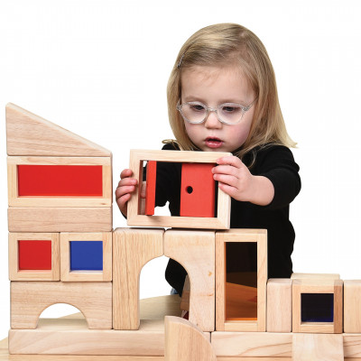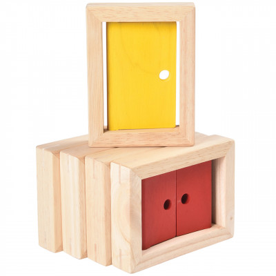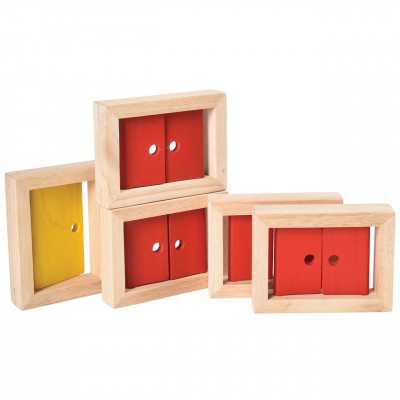 5 piece set of blocks (4 windows and 1 door). Crafted of smooth hardwood with permanently attached, opening panels, these blocks are perfectly scaled to be compatible with our unit block sets (sold separately.) Window is 5?? inch L. x 4 inch W. x 1??? thick. Ages 3 yrs. +.