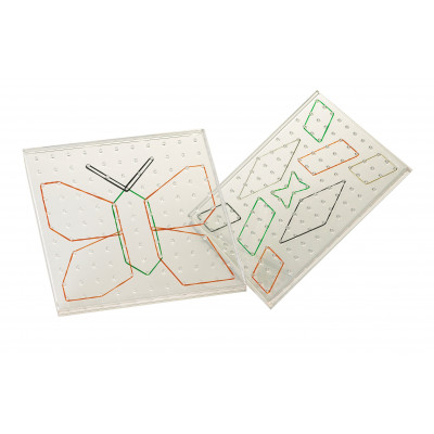 One side of this durable plastic board has a 3/4" isometric arrangement of pins and the other side has an 11 x 11 pin square array. Grades K-9.