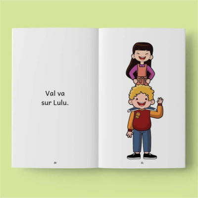 Chaque livre introduit progressivement de nouveaux sons, en commençant par seulement sept lettres (A, E, U, L, R, S, V). Les phrases sont courtes, les mots sont facilement déchiffrables, et chaque histoire permet à l’enfant de lire un vrai livre — tout seul ! Cela renforce la confiance et l’envie de continuer à lire.