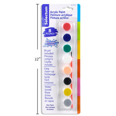 This set of Acrylic Selectum Paint Pots contains 8 Paint pots are non-toxic, water-based paints that can be used for arts and crafts, posters and school projects.