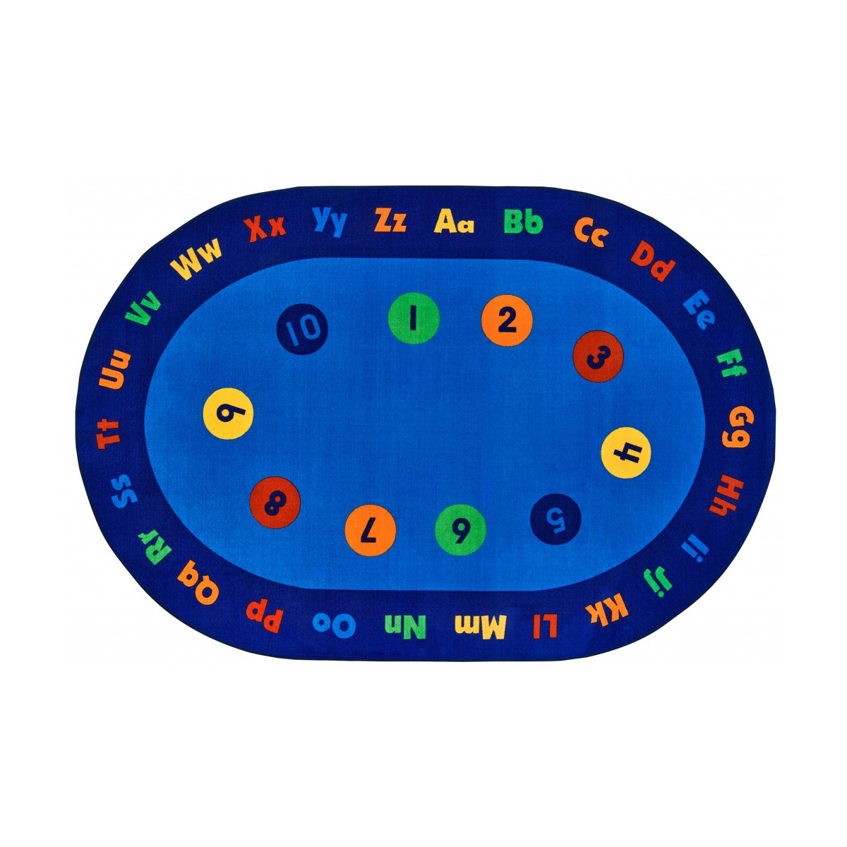 Circletime is important time in the classroom. This great value carpet features uppercase and lowercase letters and numbers 1-10 in classic blue with rainbow colors on the border.