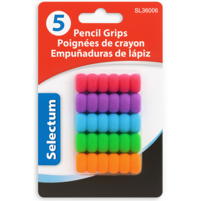 The Selectum pencil grip features a soft, cushion-textured foam designed to provide comfort and control during writing. Its ergonomic, multi-bubble shape helps guide fingers into a natural writing position, reducing fatigue and improving grip stability. Ideal for students, teachers, artists, and anyone who spends extended time writing, this brightly colored grip fits most standard pencils, pens, and drawing tools. Sold in assorted vibrant colors, it adds both comfort and fun to any writing experience.