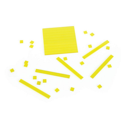 This unique classroom set of base ten componen ts conveniently interlocks to clarify place value, estimation and operations concepts by enabling students to manipulate and visualize varying quantities with ease. More advanced students can explore spatial relationships and volume. Plastic set is washable and durable for years of hands-on activities. Great for whole-class instruction, small groups, centers or individual exploration. Boxed set features 600 units, 200 rods, 20 flats, 3 cubes and 112-page Base Ten Book filled with teaching ideas.