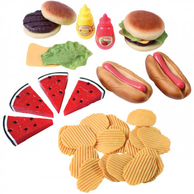 Fun food play throughout the day! Includes Breakfast, Lunch, and Dinner baskets. Each meal includes 16-18 nutritious food items made of soft, durable plastic sprouting a contemporary, spunky look!