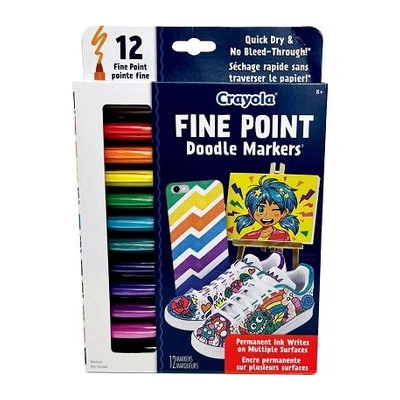 Define each and every detail of your next work of art with the Crayola Fine Point Doodle Markers. They are perfect for fine details and doodles, offering intense permanent ink that won't smudge or bleed through! Use them to practice creative lettering, detail handmade cards, decorate notebooks, bullet journal, and so much more.