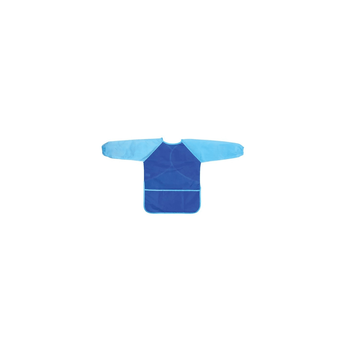 Protect childrens clothes and comfort with waterproof artist smocks! Available in four sizes with velcro closure in back. Light and dark blue design. Made of polyester, easy to wash.