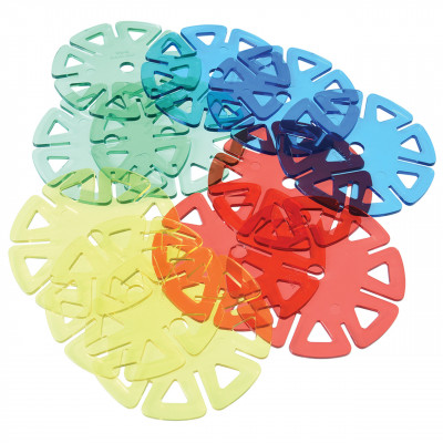 • 15 people threaded bodies, 45 rainbow coloured slide-on cuffs and 15 screw-on "feet" with a cotton storage bag.