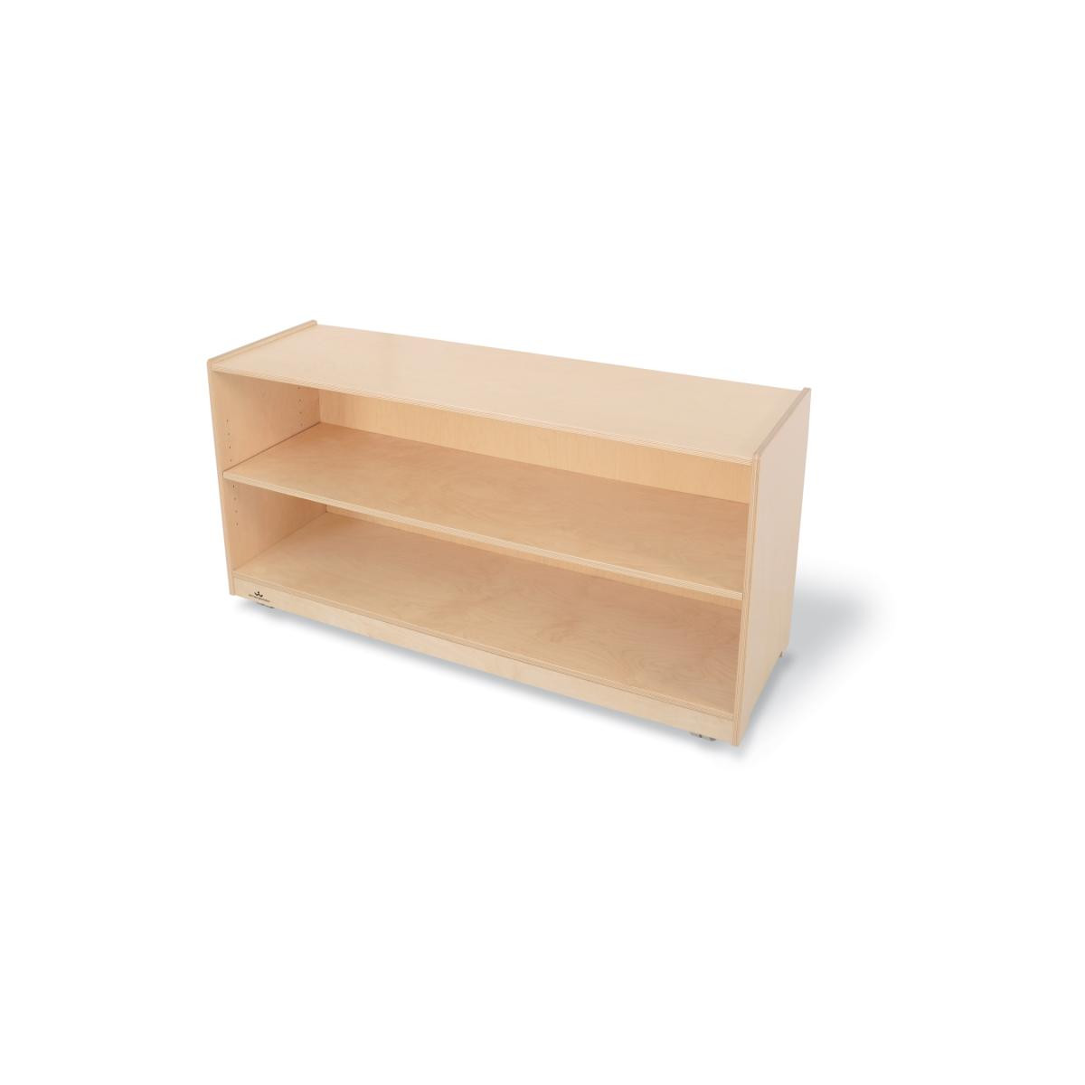 Attractive and economical mobile shel f storage cabinet! Our Shelf Cabinet family features standard dimensions of 15-in depth and 48-in width and is available in heights of 24-in, 30-in, 36-in, 42-in, 48-in and 54-in. The WB1843 54-in Shelf Cabinet features two fixed and three adjustable shelves that provide flexible configuration to accommodate a varied assortment of taller books, larger toys, stuffed animals or other large items. Mounted on four heavy duty non-marking casters; includes wall attachment brackets for safety. Need a different height? Check out the options in our Shelf Cabinet family: WB1849 48-in, WB1850 42-in, WB1853 36-in, WB1851 30-in and WB1852 24-in [each sold separately]. Constructed in beautiful, durable birch plywood with no visible screws or joinery for a fine finished furniture look in safe, non-toxic natural UV finish that won't yellow and withstands rigorous use. Made in USA. GreenGuard™ Gold certified. Lifetime Warranty.