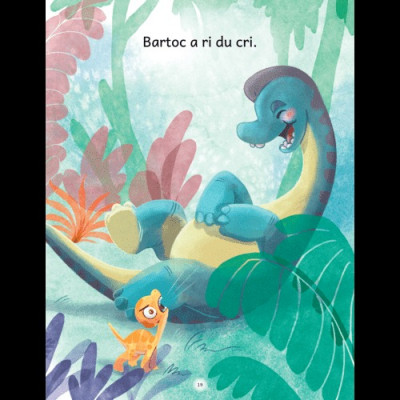Miro le dino, tome 1 – Chercher son cri est un album à lire en tandem, une page pour l’adulte et une phrase pour l’enfant.