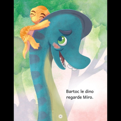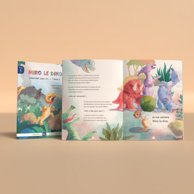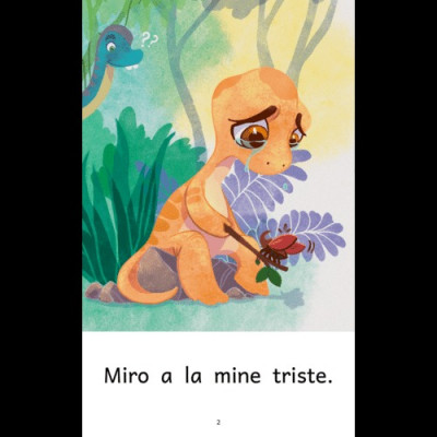 Miro le dino, tome 1 – Chercher son cri est un album à lire en tandem, une page pour l’adulte et une phrase pour l’enfant. La phrase de l’enfant ne contient que des sons simples et des lettres sans accent. C’est un moment privilégié pour favoriser l’amour de la lecture !
