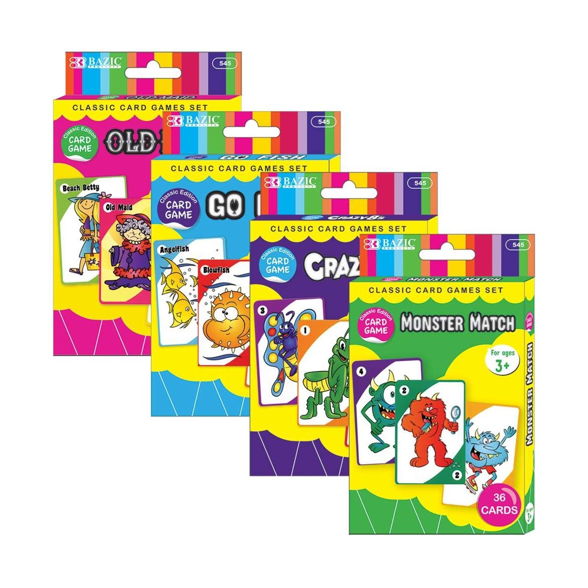 Make learning fun and interactive with this Classic Card Games Set, a versatile collection of four timeless and educational games: Old Maid, Go Fish, Crazy 8s, and Monster Match. Designed with bright, engaging illustrations and easy-to-understand gameplay, this set is ideal for young learners in classrooms, childcare settings, or at home.