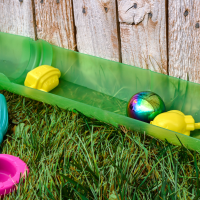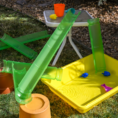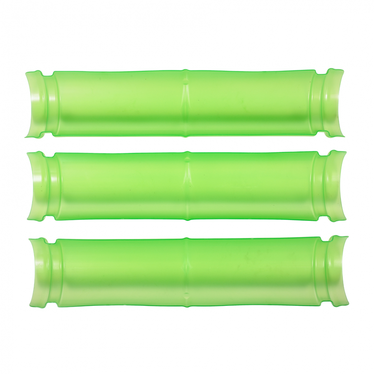 Water channels in the shape of bamboo stalks. Made of semi-translucent green plastic. 8 pieces in 2 different sizes.