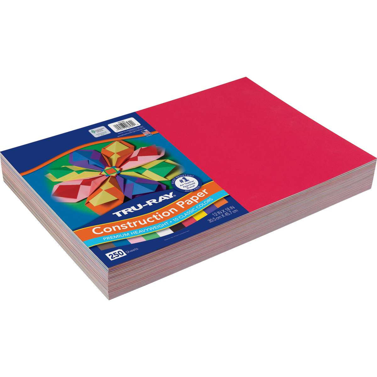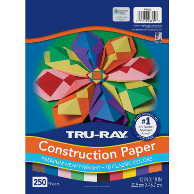 Extra large value assortments of Tru-Ray® Construction Paper. Assortment includes: Black, Dark Brown, Pink, Purple, Orange, Yellow, Blue, Festive Green, Red and White. Acid free for less fade. Recyclable.