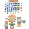 100 Piece Set Includes 5 Panels with: 1 giant calendar grid, 12 month headers, 33 dates, 37 special days, a days of the week header and chart with 3 indicators, 2 character indicators, and a 10 piece season and weather set.
