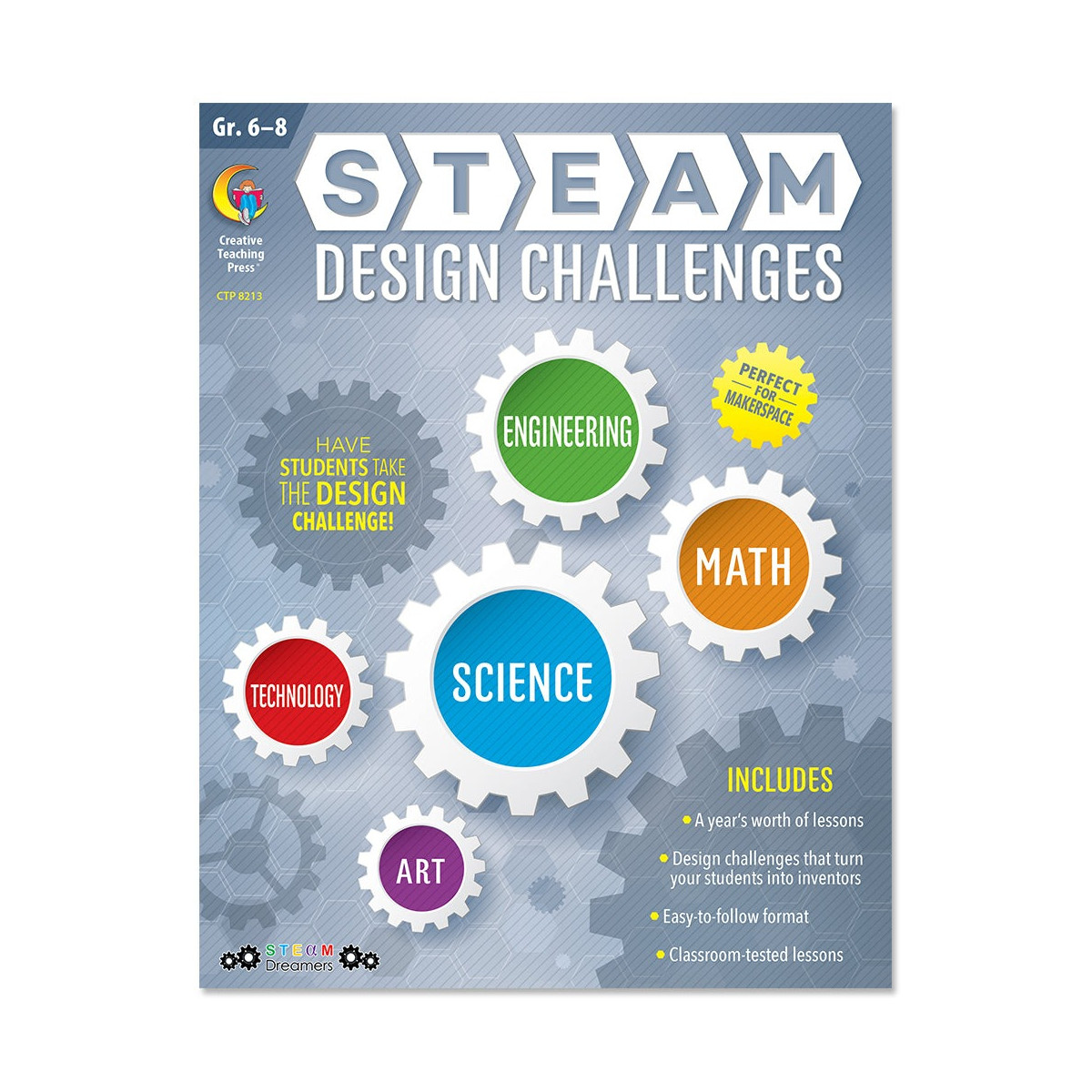 The STEAM Design Challenges in this 152-page book follow engineering practices to teach students in Grades 6-8 to solve a problem by designing, creating, and justifying their designs. They also allow art to support and enhance the learning of science and math while the engineering process is followed.