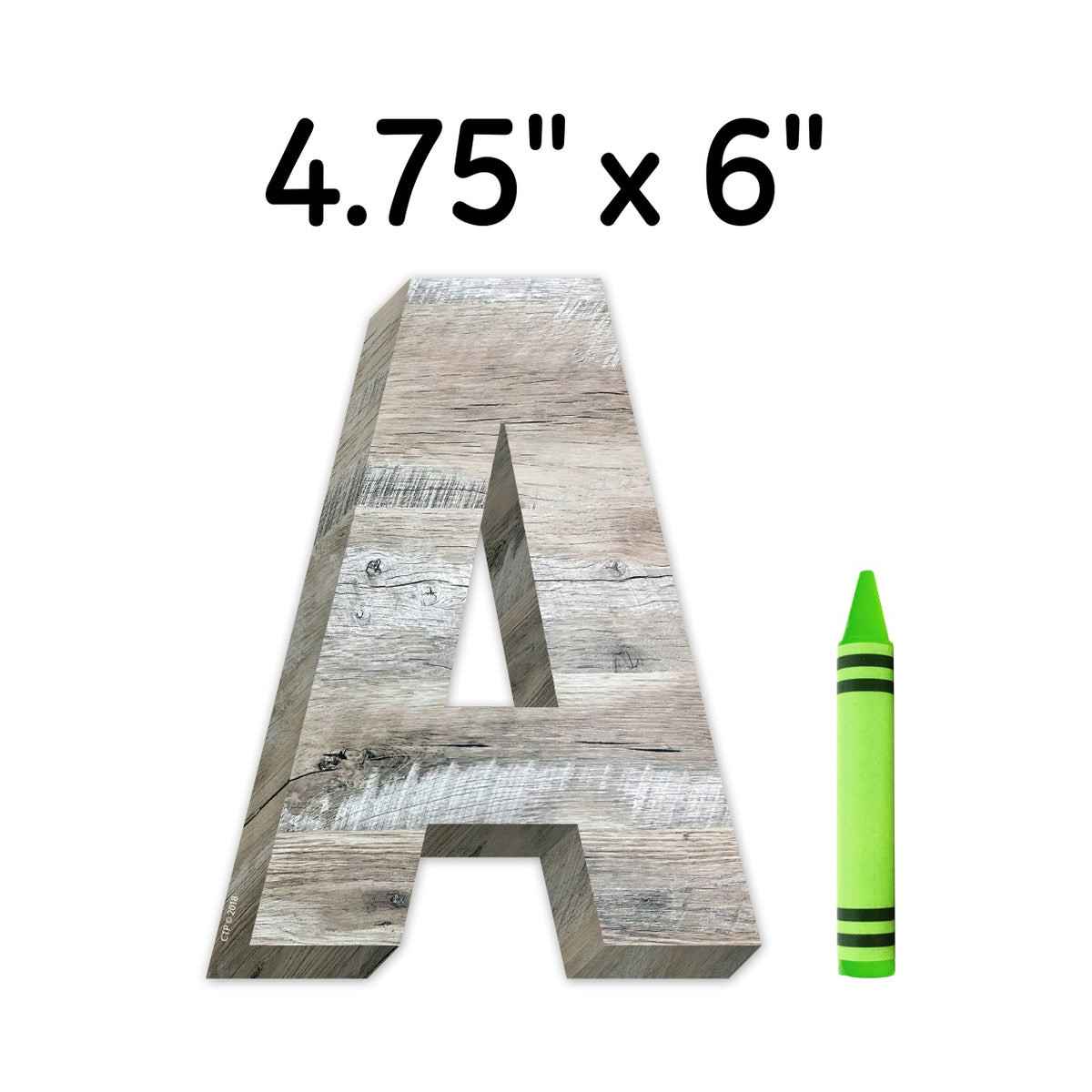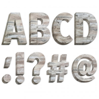 Bring the feel of weathered wood to your bulletin boards and classroom displays. These Rustic Wood 6" Designer Letters were inspired by those you see on popular home remodeling shows! The design's imagery of actual distressed wood gives these letters a natural appearance. They are great for creating bulletin boards about science, nature, trees, and camping. The natural look of these punch-out letters makes them ideal for classrooms using the Reggio-Emilia approach in which the environment is the first teacher. This package features 110 pieces, including uppercase letters, punctuation marks, and symbols.