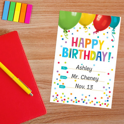 The festive balloons, playful letters and colorful confetti on this award will brighten any student's birthday!