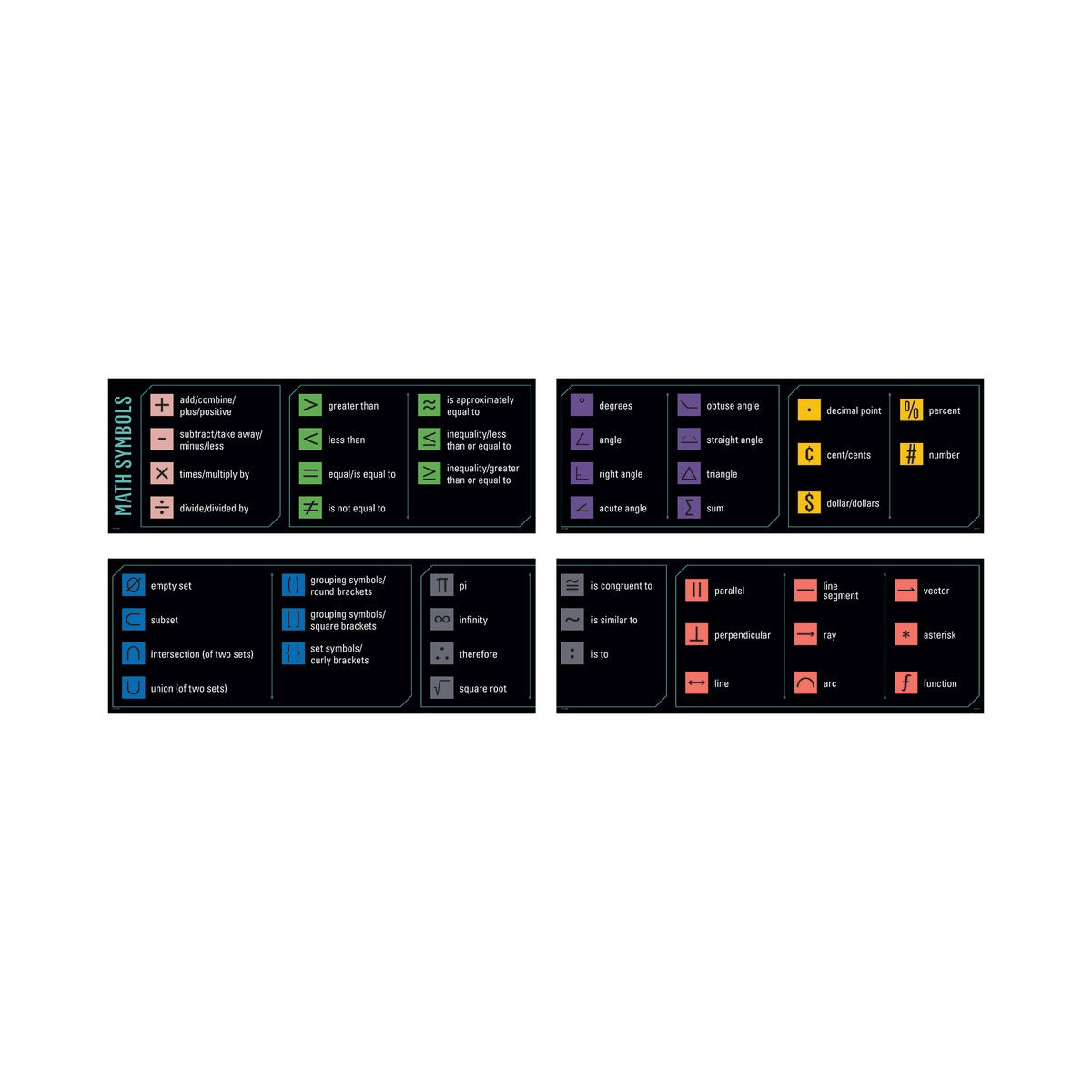 This 8-foot-long whiteboard topper features a clear visual representation of each math symbol alongside easy-to-read text to capture students' attention, reinforce instruction, and foster learning. This learning resource provides a concise reference, and helps create a stimulating, standards-based classroom environment.