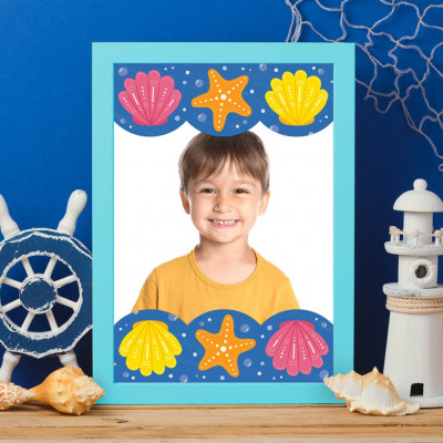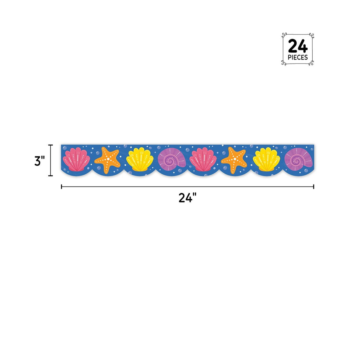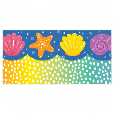 This Seashells EZ Border features a variety of colorful seashells on a watery blue background, perfect for bringing a touch o...