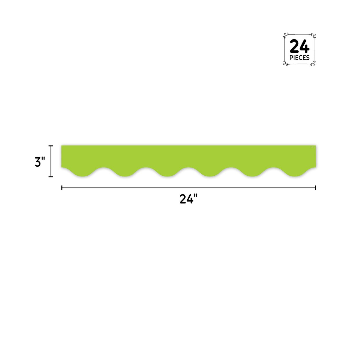 Frame your bulletin boards in style with this Lime Wavy EZ Border. Use the border by itself or layer it with another border for a unique look. Perfect for use on bulletin boards in a wide variety of classroom, office, and school settings. Each package comes with enough borders to complete 2 full bulletin boards.
