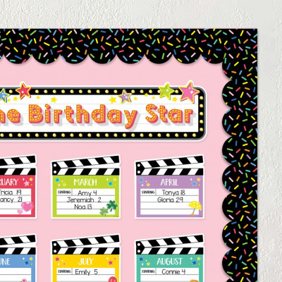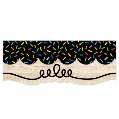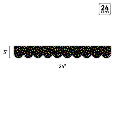 This Sprinkles on Black EZ Border features multicolored sprinkles on a black background for a festive look that will turn any bulletin board display into a celebration. Use the border by itself or layer it with another border for a unique look. Perfect for use on bulletin boards in a wide variety of classroom, office, and school settings. Each package comes with enough borders to complete 2 full bulletin boards.