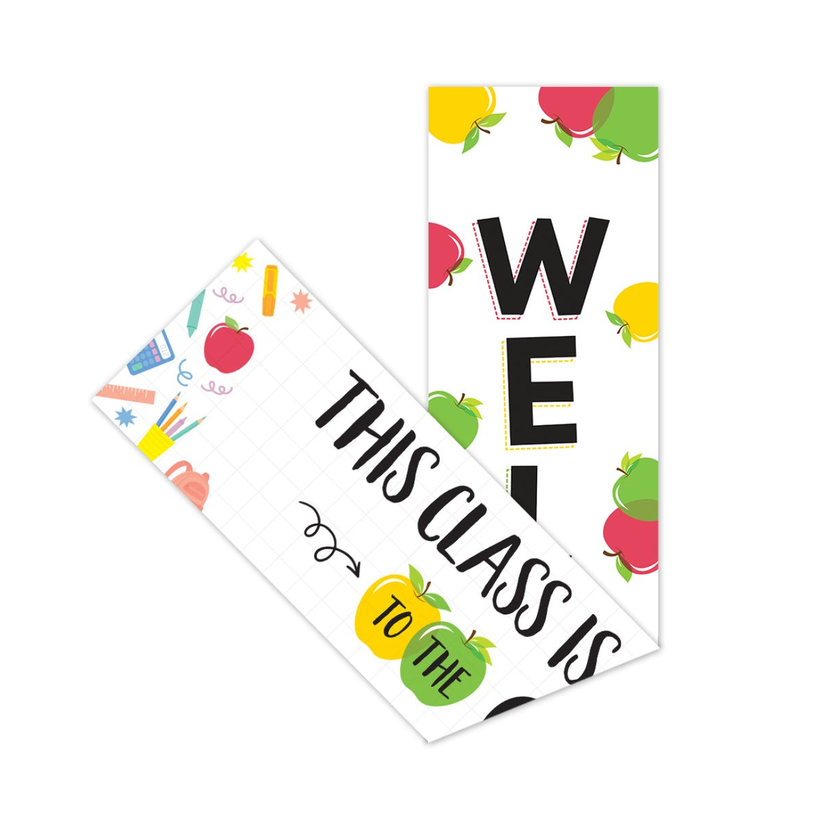 This fun and versatile 2-sided banner features colorful apples along with different messages on each side—Side 1: “Welcome” a...