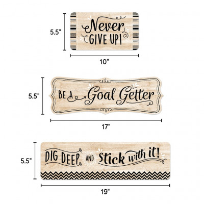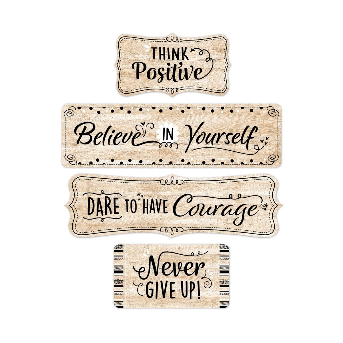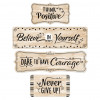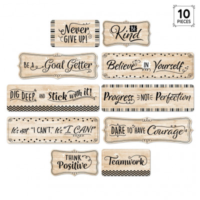 Help build tomorrow’s leaders by instilling in them the confidence, resiliency, and growth mindset they need to succeed with these Core Décor Mindset Matters Headlines. These headlines feature a classic style with black and white core patterns on a neutral wood background and can stand-alone as motivational messages or be displayed together on a bulletin board to create a meaningful reminders space. This versatile set is the perfect addition to any classroom or anywhere a little inspiration is needed!This set includes 10 positive phrases: