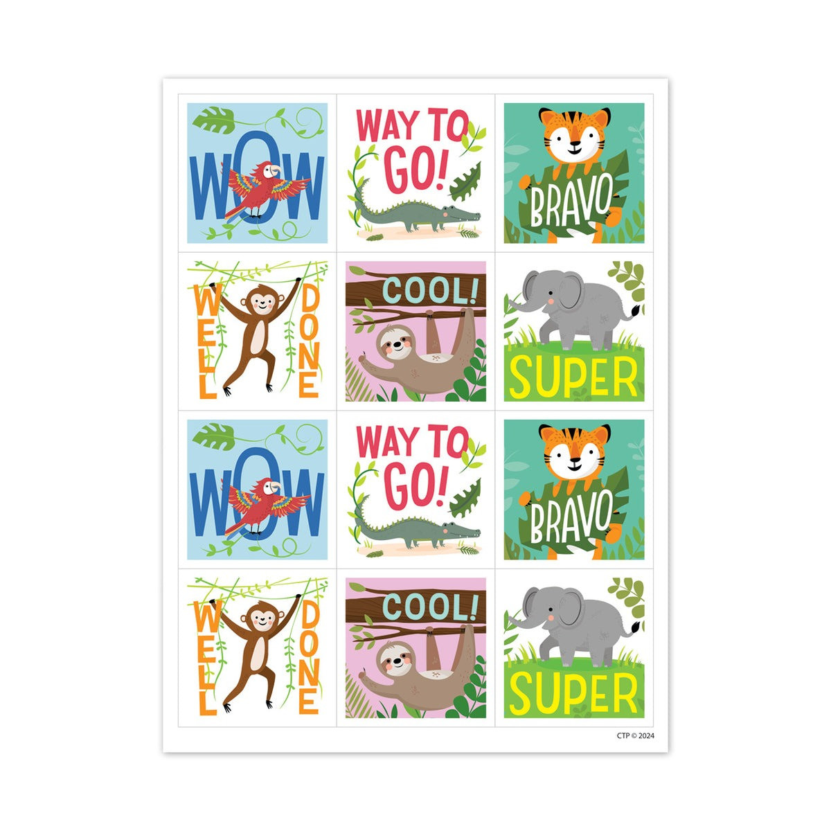 Reward students with these Jungle Friends Rewards Stickers. Inspirational sayings, such as “Well Done,” “Way to Go!,” and “Br...