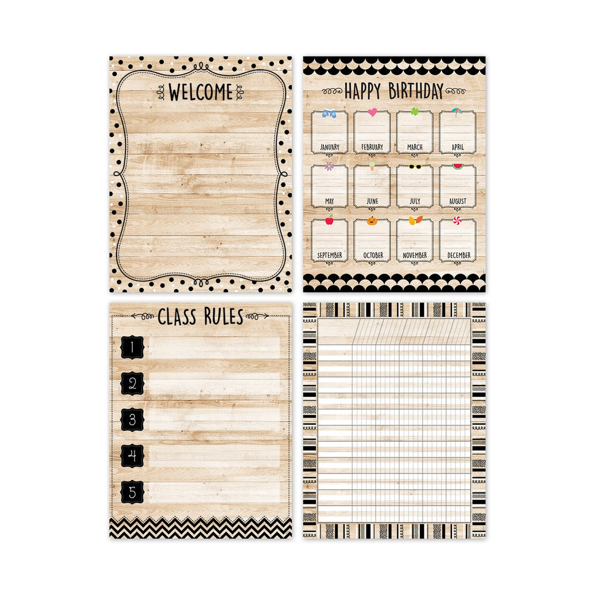 The Black, White, and Wood Classroom Essentials 4-Chart Pack will help organize and communicate important information in any ...