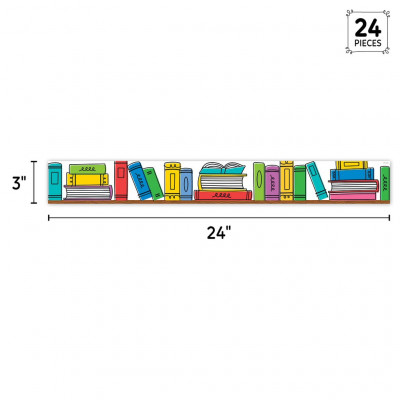 This Doodle Bookshelf EZ Border depicts an array of colorful books on a shelf, perfect for trimming bulletin boards in reading centers, libraries, and any place where literacy is taught and celebrated. This EZ border comes in smaller strips, which are easier to manage and store. Each package comes with enough border to complete 2 full bulletin boards
