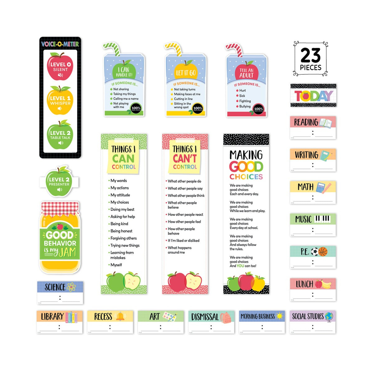 The Class Management Mini Bulletin Board set, featuring a charming apple theme, is designed to foster a positive and encourag...