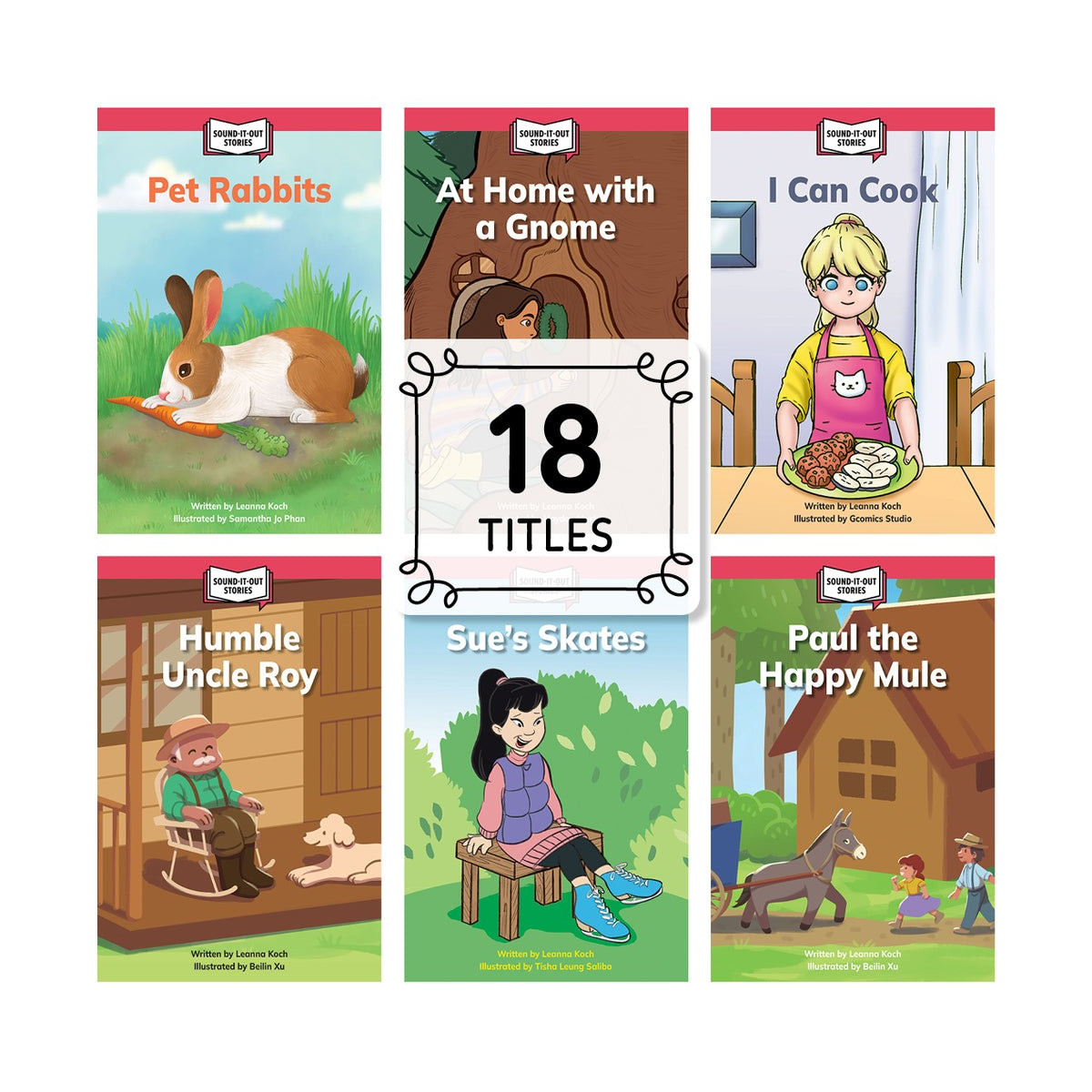 The books in set 2 of the Sound-It-Out Stories Decodable Readers series provide practice in the phonics skills that equip young readers to unlock unfamiliar words, improve reading accuracy, gain reading confidence, and read independently. Each book focuses on specific phonics patterns in the context of a fun story. Books in the series are in sequential order, from simplest to more complex, beginning with just a few skills and then including previously mastered skills. Readers are encouraged to sound out the words using letter-sound decoding strategies to experience reading success.