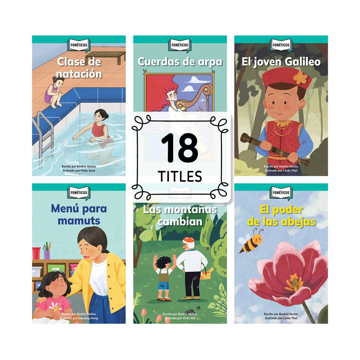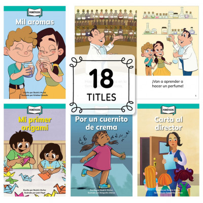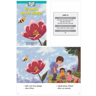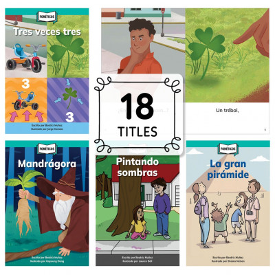 The Spanish-language books in set 2 of the Fonéticos Decodable Readers series provide practice in the phonics skills that equip young readers to unlock unfamiliar words, improve reading accuracy, gain reading confidence, and read independently. Each book focuses on specific phonics patterns in the context of a fun story. Books in the series are in sequential order, from simplest to more complex, beginning with just a few skills and then including previously mastered skills. Readers are encouraged to sound out the words using letter-sound decoding strategies to experience reading success.
