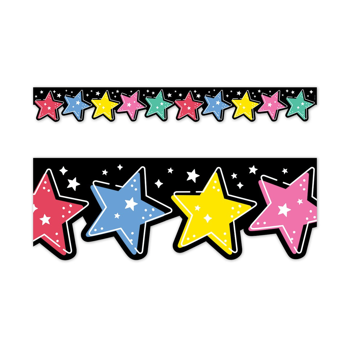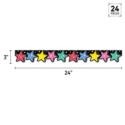 This Star Bright EZ Border is the perfect way to frame displays of students’ stellar work! The bold and bright colorful stars are sure to liven up any room. This EZ Border comes in smaller strips, which are easier to manage and store. Each package comes with enough border to complete 2 full bulletin boards.