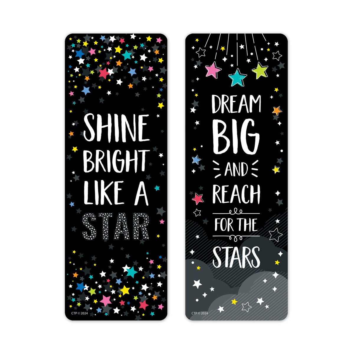 These dazzling Positive Mindset Bookmarks are designed to inspire students of all ages to achieve great things. Bookmarks come in two star-studded designs, each with a different motivating message. Bookmark 1: Shine Bright Like a Star Bookmark 2: Dream Big and Reach for the Stars.