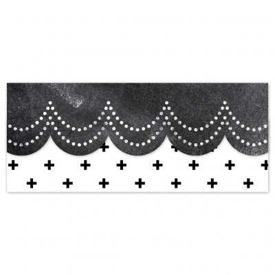 Add a touch of elegance to your wall displays with the Dotted Scallops EZ Border. This border features the look of beaded garland on a chalk-style background. Perfect for use on bulletin boards in a wide variety of classroom, office, and school settings. These EZ borders come in smaller strips, which are easier to manage and store. Each package comes with enough borders to complete 2 full bulletin boards.