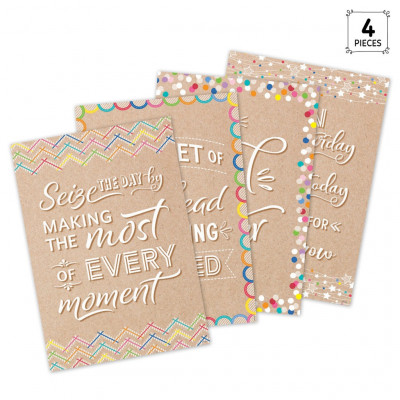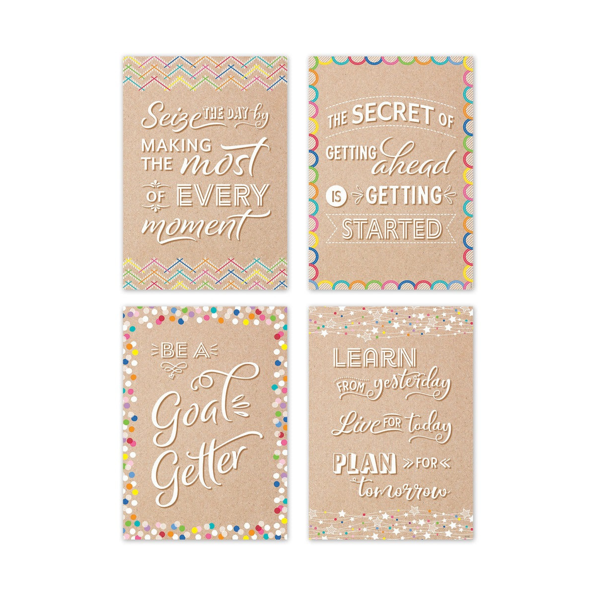 Great advice for achieving success is featured on each stylish poster in this Krafty Pop Inspire U 4-Poster Pack. The fun fonts and pops of colors on a kraft paper-style background provide a creative, handcrafted look. Perfect for display in a school, church, dormitory, or anywhere a little inspiration is needed.