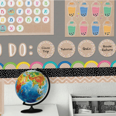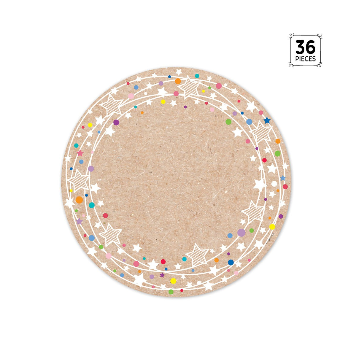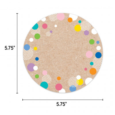 Make well-rounded messages with the circular Colorful Kraft Cards 6" Designer Cut-Outs. Featuring a kraft-style background with colorful accents around the edges, these cut-outs can be used for crafting projects, displaying photos, making covers for mini books, making flash cards, creating small classroom signs, sending notes home to parents, and more! They also make great labels on cubbies, student folders, supply bins, and binders.