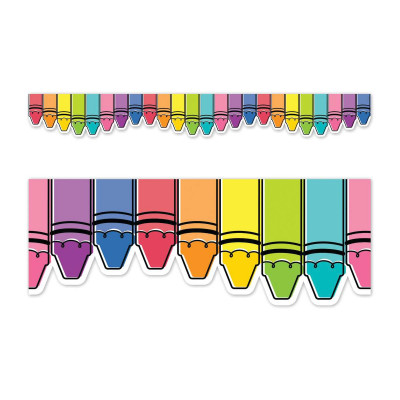 This colorful Ombre Rainbow Scallops Border will trim any bulletin board display in style! The bright and colorful ombre rainbow stands out on this versatile bulletin board border that can be used not only in a classroom or at a school but also at an office, a college dorm, or an employee break room. Layer multiple borders to create a special pop in your classroom. These new EZ borders come in smaller strips, which are easier to manage and store. Each package comes with enough borders to complete 2 full bulletin boards.