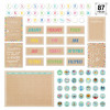 This 87-piece set includes a calendar chart, 12 month headlines, 31 pre-numbered calendar days, 23/30, 24/31, and 2 blank calendar days, 35 coordinating holiday and special day cards, and 4 motivational mini posters.