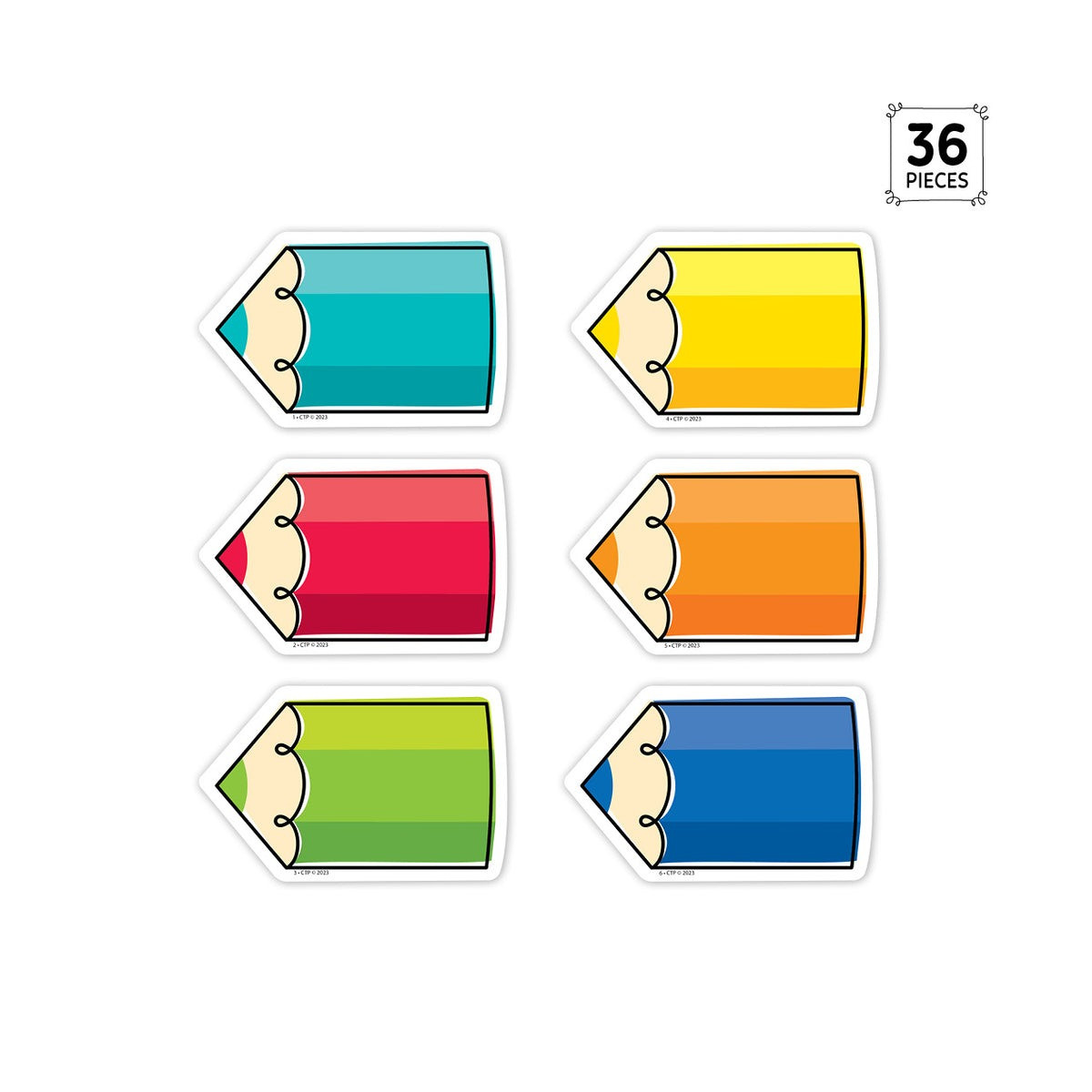 These stubby Colorful Doodle Pencil 3" Designer Cut-Outs can be used in student writing projects, writing center games or displays, and on writing- or coloring-themed bulletin boards. These fun cut-outs are also perfect for the calendar, classroom labels, desk and cubby tags, accents on bulletin boards, designating class groups, student-made books, scrapbooks, gift tags, and more!