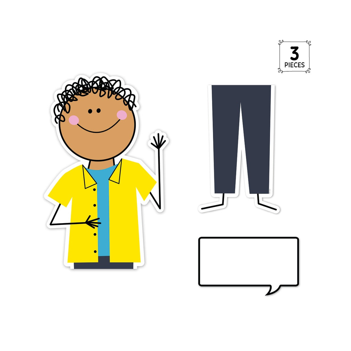 Make messages on bulletin boards, doors, and wall displays memorable with this happy, giant stick kid figure and speech bubble.