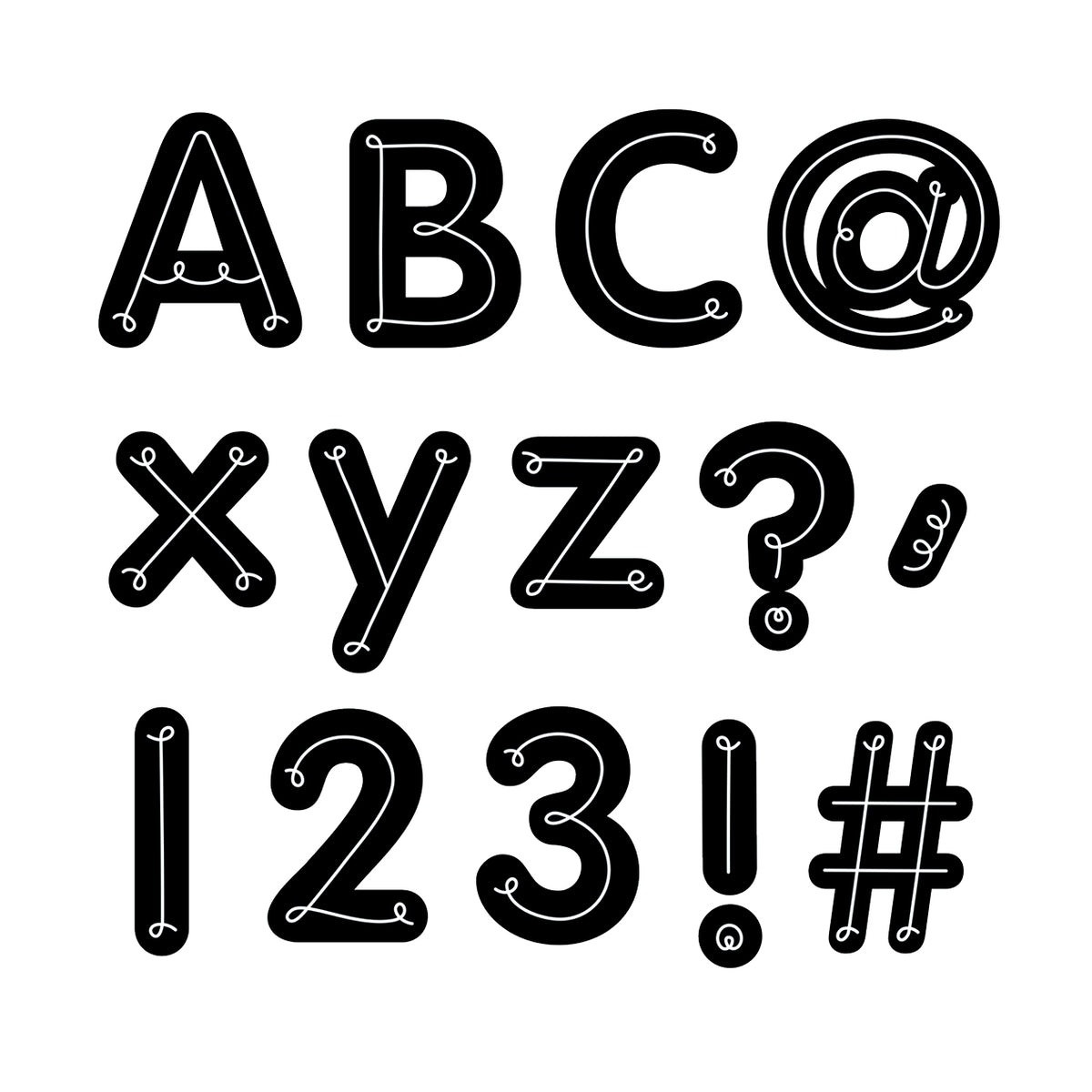Create personalized headlines with a flair using this Loop-de-Loop Designer Letters set. The 206 pieces include upper and lowercase letters, punctuation marks, numbers, and social media symbols. The simple, modern look of these punch-out letters makes them versatile for use on any bulletin board or display in a school, office, dormitory, church, or daycare center. Also great for creating banners, party signs and more!