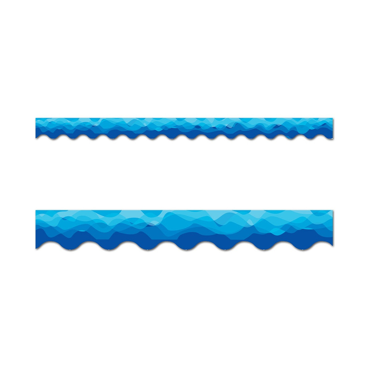 Add pizzazz to bulletin boards, doors, and common areas with this colorful Waves of Blue Wavy EZ Border. Great for holiday an...