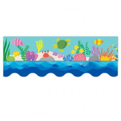 Add pizzazz to bulletin boards, doors, and common areas with this colorful Waves of Blue Wavy EZ Border. Great for holiday and seasonal decorating. These new EZ borders come in smaller strips, which are easier to manage and store. Each package comes with enough borders to complete 2 full bulletin boards.
