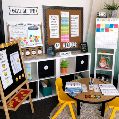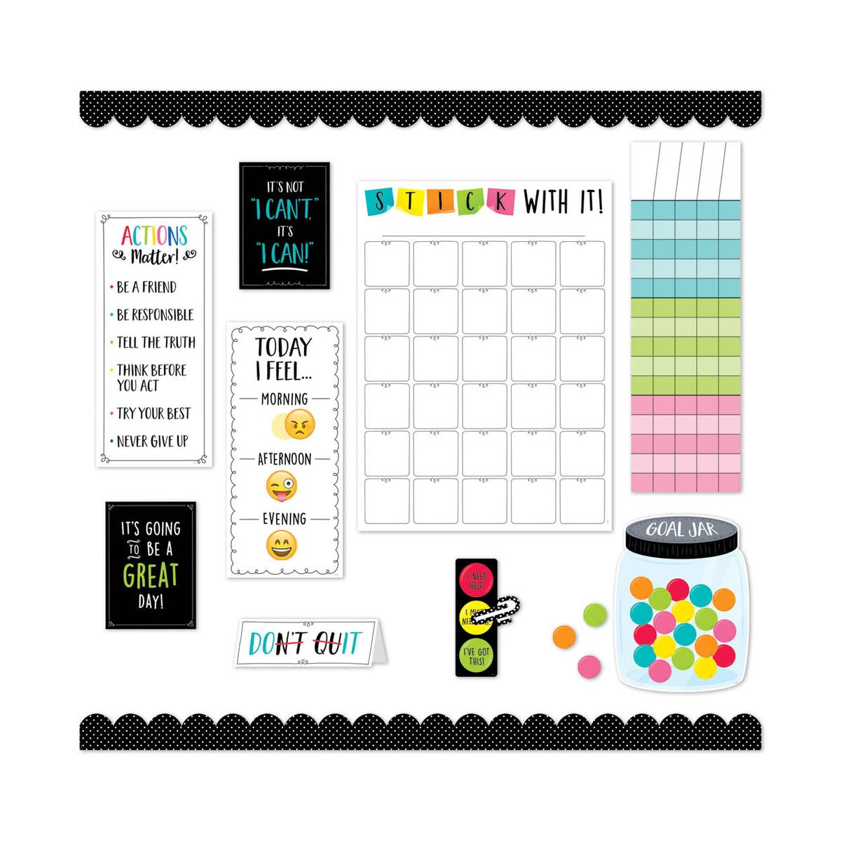 Help learners stay motivated and on task as they learn life skills and strategies for success with this At-Home Classroom bulletin board set! Designed for use in either classroom or at-home learning environments, the 68 pieces in this set can be used to create engaging, interactive displays that inspire students to stay focused on learning goals and give their best effort every day. Great for in-person, Zoom, and remote instructional spaces.